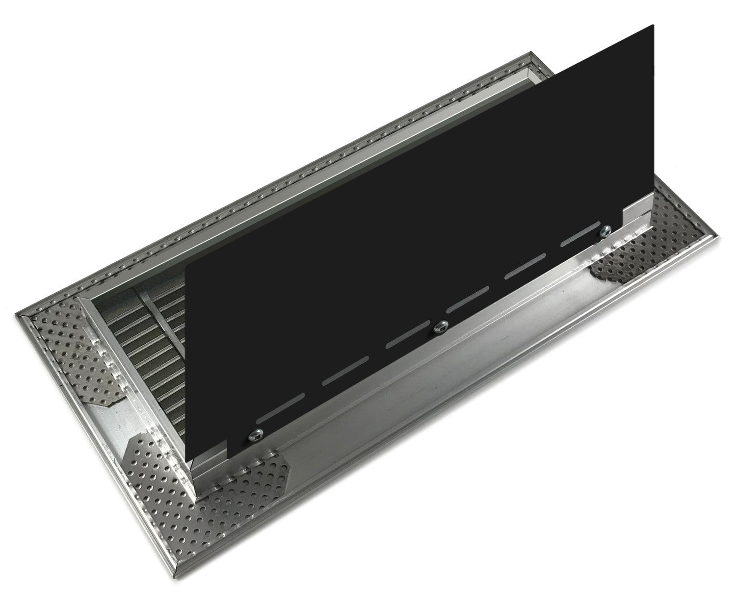 To maintain a minimalist appearance, kül offers a visually clean, easily accessible residential slide damper as an accessory to our linear grilles to allow for air flow control where necessary. Available for our standard 10x3, 10x4 and 12x4 grille sizes, these dampers are stock items and are available for quick ship.
